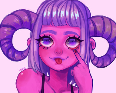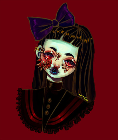 I love that you picked warm colors for this, I find it matches the fleshy opened cheek with all the rest. Like the mouth is not a stranger element, but rather a part of her that makes her look so cute and unsettling at the same time. Also I think of Ludmila as a name, don't ask why