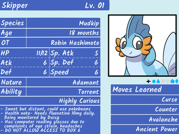Requiem's name came to Ffion with little effort, the Mudkip seemed to enjoy singing and humming and there was something about her that came across as familiar. Like a long forgotten Melody.