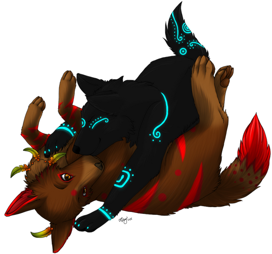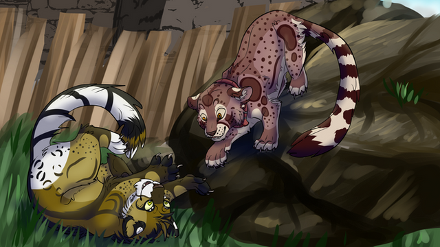 Aludra and Nashira playing. The two sisters are like 5 weeks old now and already "fighting" but without harming each other. Aludra pushed Nashira to the ground, but little nashira only poops her nose.After I finished this drawing of mine and *Kurosava-Neko s Salikos as Geheck (that's what newborn foxes are called) *Chaluny asked if I would draw our Salikos as puppies too.