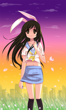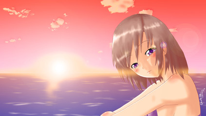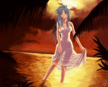 Beautiful job!! The colors that you used for the sun setting are very realistic, and the way you made her hair and dress flow just completes it!!! Well done!!!