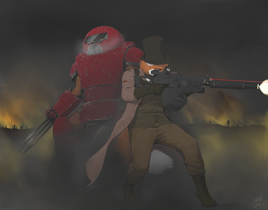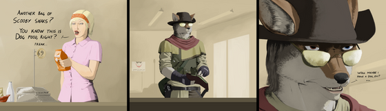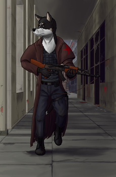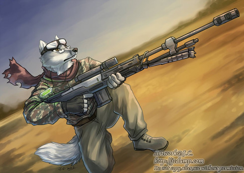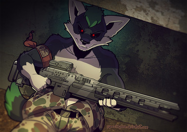 Canine-like antropomorph, Sniper mercenary with nikname "Jackal".