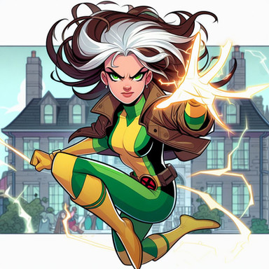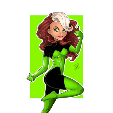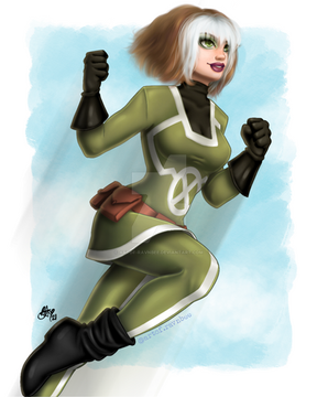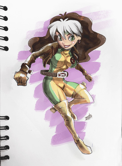 Love 80s Rogue. That little white hair tuft is so cute! Also love the flourish in the background!