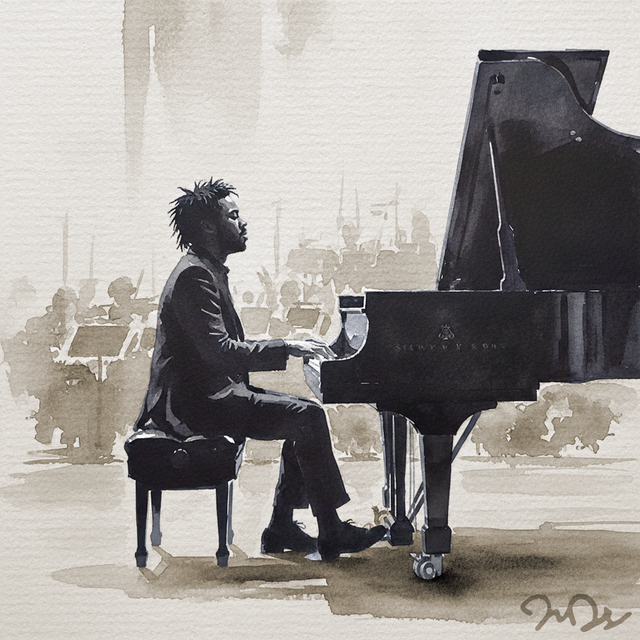 Really nice lightning, and I like that you chose red for the whole thing, it really screams passion and dedication. Including a rather large portion of the piano (instead of centering on Glasper) was also a good idea in my opinion Kind of puts him in his right element