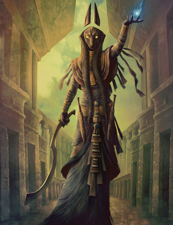 "Egyptian god with the head of a Ibis. Thoth is an unusual god. Some stories place him as the son of Ra, others say Thoth created himself through the power of language. He is the creator of magic, the inventor of writing, teacher of man, the messenger of the gods and the divine record keeper and mediator."