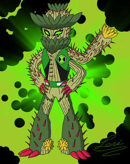 his race is known as the cacto-sapiens, a race of cactus plant-like Beings from the desert world of terra Cactos.his powers are the ability to grow, manipulate and control giant cactuses. He can use this to either use in combat or use them as a barricade. He is covered in needles one spikes that can act as a sort of protective armor and makes it difficult to for foes to touch him. He can also extend his spikes and needles for extra defense or shoot them out for projectiles for offensive purposes. He can even create ground spikes similar to swampfire. Like cacti of Earth he is resilient and able to regenerate from damage. He possesses superior strength than normal humans able to lift cars and bend steel, his spikes can also pierce through steel as well. He is very durable as well. He is also capable of surviving in harsh dry and hot environments like other earth cactuses for long periods of time.