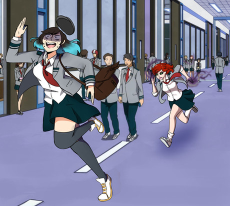 At first it was only suposed to be just Gin, but then I really wanted to try this open collab thingy so I turned it into that. xDYou can put whatever you want on the right side; be it someone chasing after her or using their quirks or just, i dunno, your OC running alongside Gin.Β