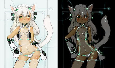 Naw! She's so cute and pretty! I love this, especially the single glove part and stockings (sorry it thats not what they are), looks so cool! Colouring style is so unique!