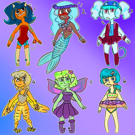 Price 5 points or art ofย CharactersRules 1 credit me as the designer 2 dont sell higher then bought if art wasn't added 3 I'm not on this site much so I might be slow in replaying 4 If the payment [points] isnt done in 7 days since commenting they are back up for adoption 8 one each 9 if you ignore a rule i will ignore you 10 can change the look