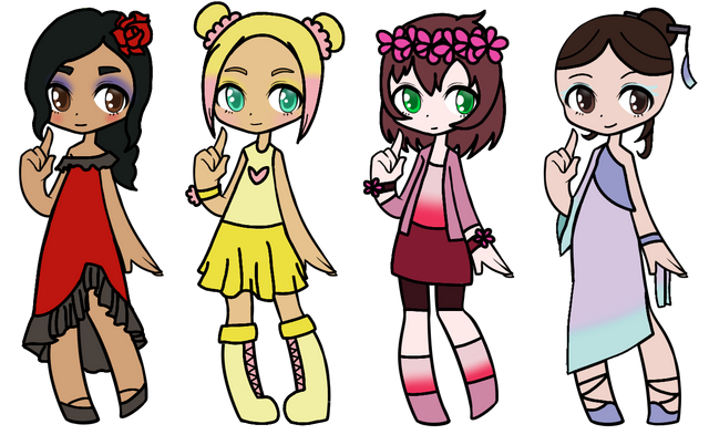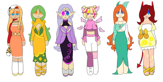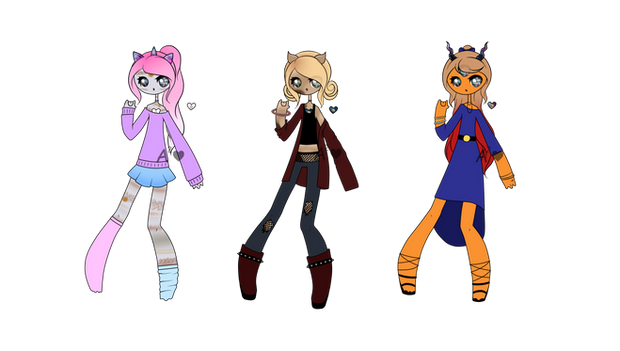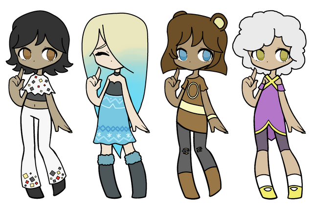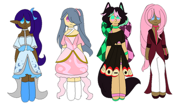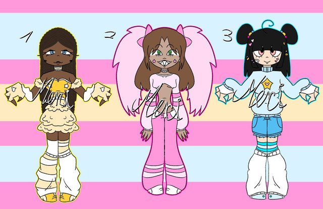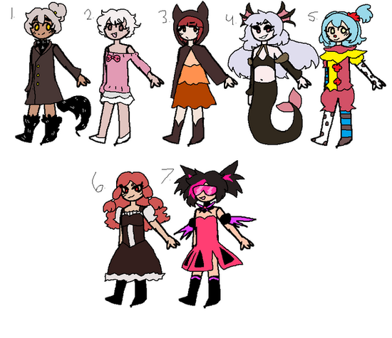 Price 5 point or art ofΒ Characters ,last one is free, i can also consider trades, i made a toyhouse if its wantedRules 1 credit me as the designer 2 dont sell higher then bought if art wasn't added 3 I'm not on this site much so I might be slow in replaying 4 If the payment [points] isnt done in 7 days since commenting they are back up for adoption 9 if you ignore a rule i will ignore you 10 can change the look 11 art will be on first place when choosin