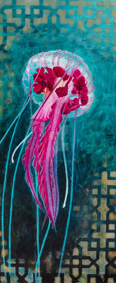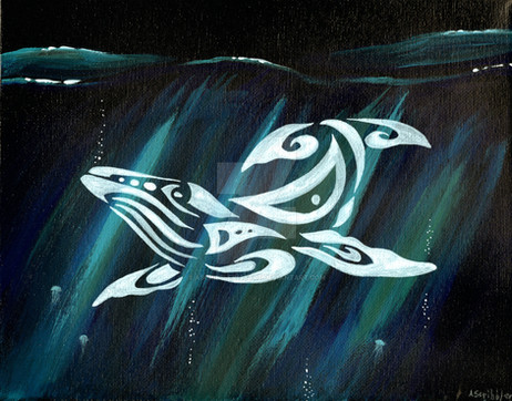 This acrylic painting is at first a) saved canvas used for practicing, second b) inspired by many amazing photographs showing the distant mysterious beauty of eagle rays. I just can imagine the feeling of divers who witness their beauty as they are gently swimming below their feet towards the endless ocean - it must be more than a "wow". These creatures of the ocean are more than beautiful to me.Acrylics on canvas, 30x25cm.