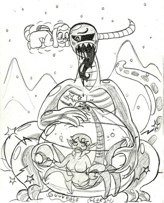 The only time I like macro/micro vore is when the pred is too stuffed to keep eating.