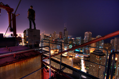 Self portrait, rooftopping in Toronto.The colors of those little boxes look pretty Christmasy, how pleasant
