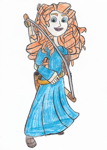 She is the second princess from a Pixar film (the first is Princess Atta from A Bug's Life ), the first original princess in the line-up that is not inspired by either literature (Snow White, Cinderella, etc.) or real-life (Pocahontas, Tiana) works, and the first without a love interest. She also never sings a major song, thus breaking away the traditional line-up, though as a child, she sang a small verse of a song in Gaelic with her mother, and Merida's rich Scottish brogue makes her the second Disney Princess with an accent other than Standard American.Merida (c) Disney/Pixar's Brave