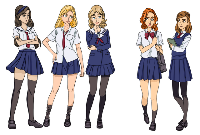Hm... that hole idea about to blonds and one brunette is like a big clichΓ©(I don`t mean you drawing)