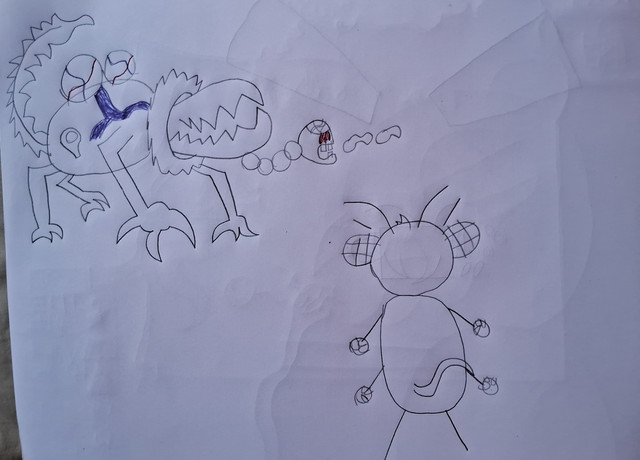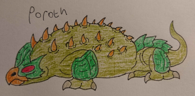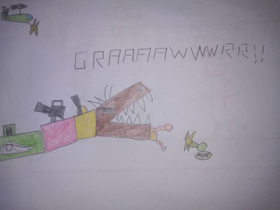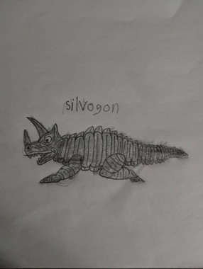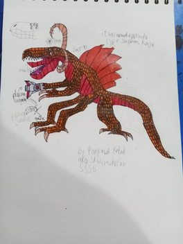 Shitacodon is a theropod creature with brownish skin measuring 3 meters long, 4 meters high and 2 meters wide, it also has blue glowing details on its body and strongly glowing blue eyes, in addition to having large, sharp, pointed teeth capable of tearing the flesh of even the toughest of creatures in a single bite. Its body has two weaknesses: Its exposed core glows a bright, slightly dark blue in the center or inside of its mouth. The theropod's skin is impossible to tear or cause any damage, due to the fact that it is very thick, and can even withstand several cannon shots from an infantry of war tanks and bombardments launched from aircraft and the monster can spit a jet of slimy acid from its mouth to trap its enemies like gum and burn them with the liquid until only bones remain. The name of the monster was given because the creature despite being very large and having resistant skin, it is very fast during its hunts and attacks its prey with great brutality, being able to even divide mere humans with its teeth and also being able to topple a bus together with several cars using brute force to cause chaos and destruction.Obs: This monster was based on the T-rex and other Theropods, but it's not a dinosaur.