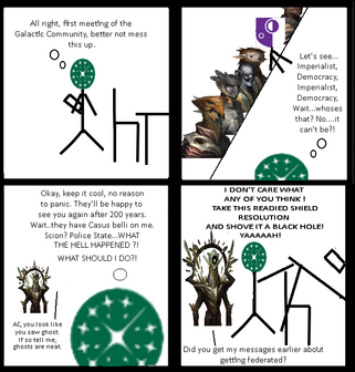 Poor Artanis. You've got a very tough job. I can totally imagine the song "Why can't we be friends" playing at the last panel.