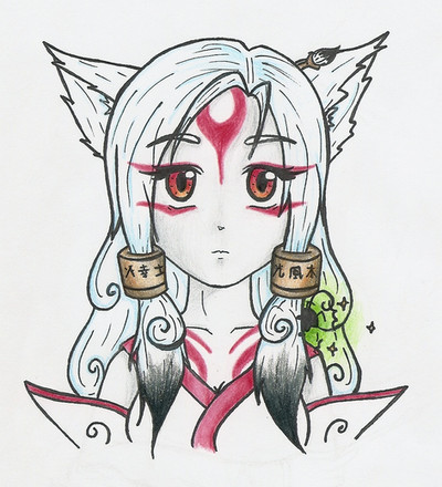 #amaterasu #ammy #anime #capcom #fanart #happy #human #manga #okami #videogame #wolf #issun #promarkers