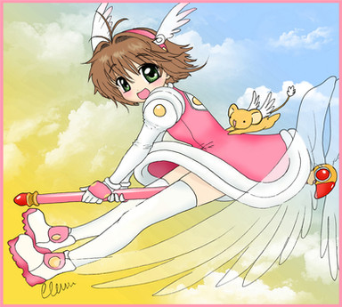 Pretty! Oh, if you think the TV show is good, check out the MANGA!! I read that and it's great. Cardcaptor Sakura is the first series, and Cardkaptor Sakura-Master of the Clow is after she gets all the cards. You can order either at [link] or [link] . I love 'em! Only 10 bucks each, so they're way cheaper than the movies and much funnier.(not to mention the beautiful art that you can use as ref pics..) To me, it seems that Cardcaptor Sakura started all these anime shows about cards. It was first, and it remains the best-better than Yu-Gi-Oh!(what's with the excamation point?), and Duel Masters. I hate Yu-Gi-Oh!-it stole Pokemons' fame in America. Although, Yu-Gi-Oh! never did much here. It's Duel Masters that's the winnah, InuYasha second, and then Pokemon is the order of popularity. Hmm. Woah, this is a long comment...bye! I'll look forward to future work from you, milli!