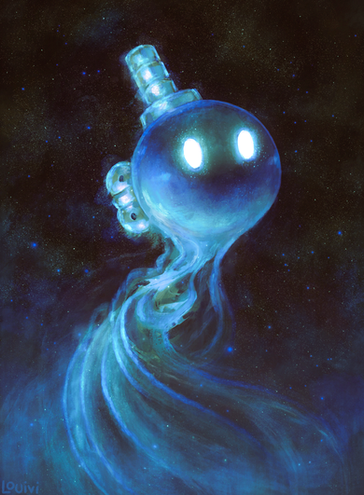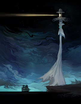 "This little spirit roams along forgotten shores in search of abandoned/old lighthouses. To honor the people who once occupied themselves by this (now obsolete) operation they climb upon the lighthouses and light them up.They have been the reason to many ghost stories in nearby villages and ships that may happen to cross waters near those old buildings.