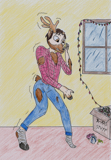 #antlers #christmas #deer #festive #furry #headband #reindeer #tf #wip #anthropomorphic #roughsketch #tornclothes #transformation