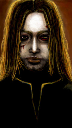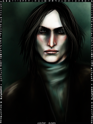That's the best pic of Vicente I've seen on DA. Really! Without that extreme cheekbones and vampire teeth and not as evil as other artists draw. I like his face, it's kinda scraggy, almost female and with open ponytail