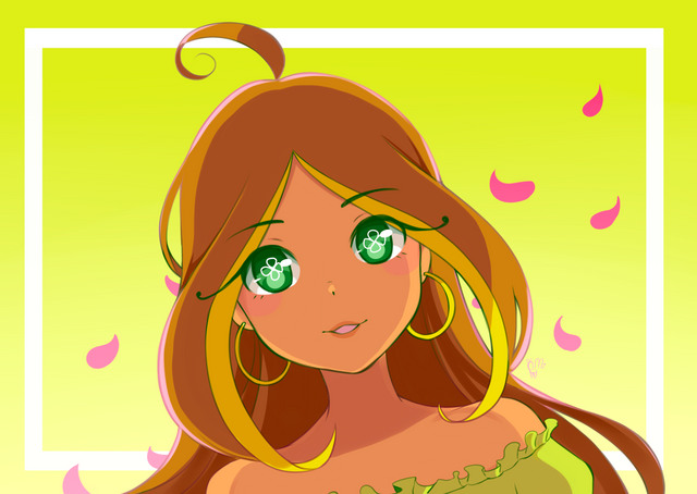 #acrylics #anime #animu #bigeyes #butterfly #commission #curlyhair #cute #dress #flower #green #greenhair #happy #idk #kawaii #longhair #manga #pink #plant #spring #warmcolors #kaweii #whatarephysics #pinkshoes