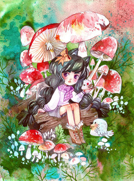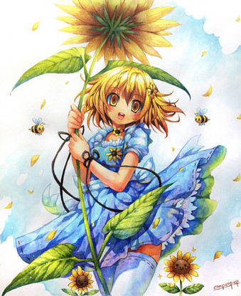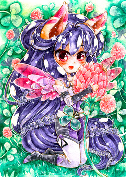 Very sweet drawing, I really like the colors and their mixtures! I think her body is a bit long and a little stiff, but it's very lovely nonetheless <3