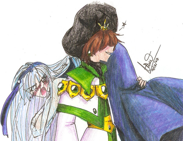 I love other Knights and Mokona chasing each other in the background poor Fuu, can't even drink tea with Ferio 'cause they're discracting her [or both of them?]