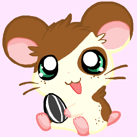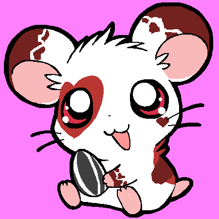 So what? :I Have you seen how crazy some guinea pigs and rabbits look? Who cares if he is a hamster? Since when do cartoons have to follow Earth physics anyways? Lot of animals actually do have fringes it's part of their fur though..XP Hamsters can have black and red eyes, so normal eye colour for hamsters on that area.Β