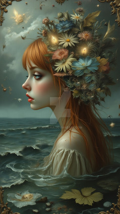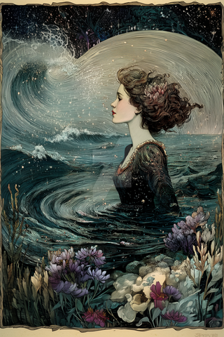 #portrait #beauty #digitalart #surreal #sea #ai #fantasy #femininebeauty #flowers #moonlight #ocean #romantic #waves #woman #women #aiart #mimsytrove