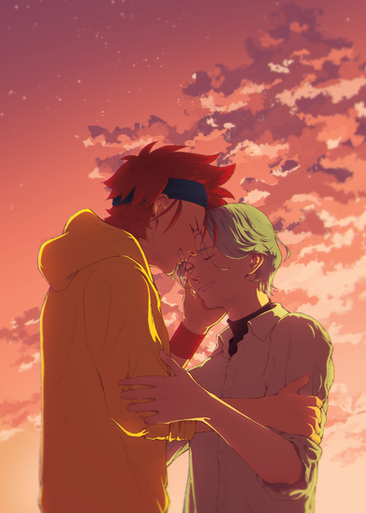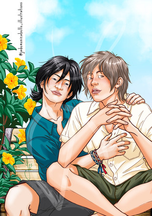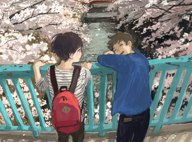 #anime #bl #boys #boyslove #flowers #hug #illust #illustration #japan #manga #shadow #spring #sunset #touch #two