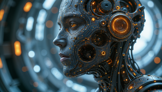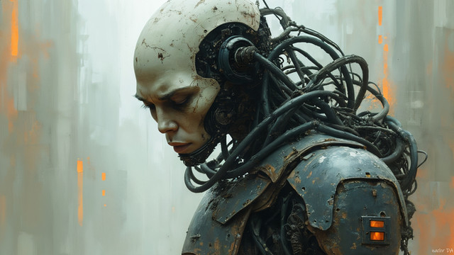 #scifi #cyberpunk #robot #cyborg #digitalart #wallpaper #photography #digitalpainting #ai #artgallery #desktop #hd #mechdesign #peaceful #aiart #artoftheday #cybermonk #sentientmachine #art #glowingcore #roboticemotion #midjourney #androidportrait #midjourneyart #posthumanart #aidesing #futuristicbeing #emberlessreverie #syntheticmelancholy #scifidreamer