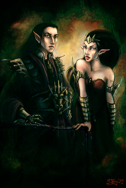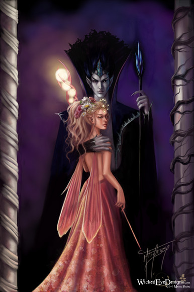 Beautiful yet scary eyes for the dude... Almost souless and evil! Especially the birds or the bats or whatever they are add to this feeling and seem to link to the guy. Yet the flowers and mist seem to link to the girl in her fragile beauty!