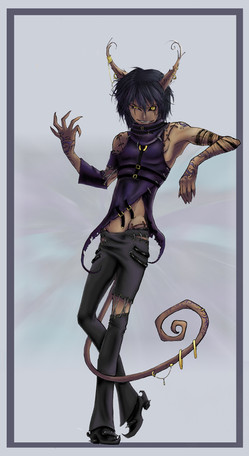 XD Well, you cant see it, but he does.. His hair fades to white.. THen back to black. Its... Odd. I might have to rework his design a little more...