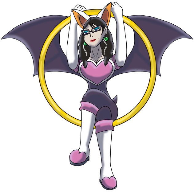 Instead of being with her usual attire, a black dress and a pair of black goth boots, the goth gal was wearing the same outfit as Rouge the bat. She had a pair of white gloves and boots with pink details, the black bodysuit and the pink chest plate. Not only that, but she also had the same kind of eyeshadow she used and a pair of bat wings in her back, ones that looked pretty similar to the ones of the alluring bat.