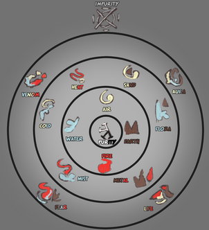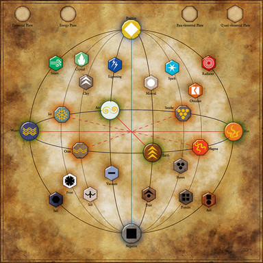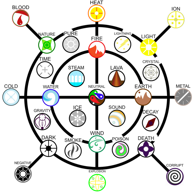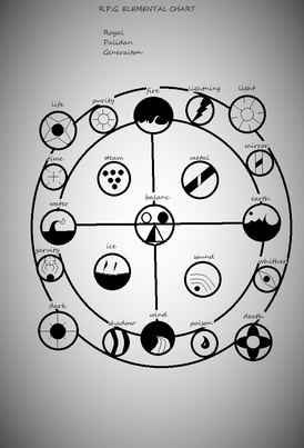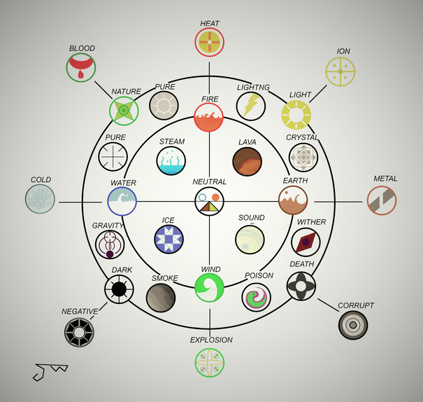 Card art for a card game I'm developing.It's called 'Magic Battlegrounds' and this art for the back of the cards showcases every element and sub-element in the game in a simple display.