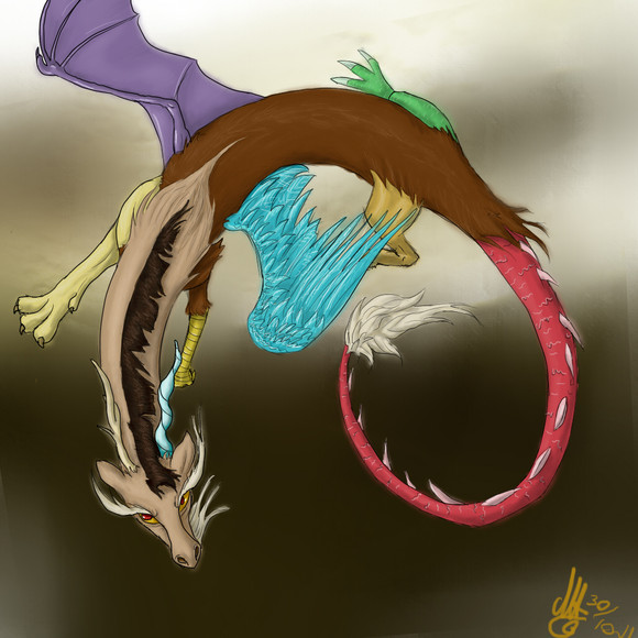 This is a really impressive and unique depiction of Discord. In particular the gloss effect used most prominently on the green limb, adds a life-like dimension to the already astounding piece. Well done indeed.