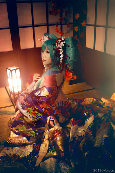 Never in a thousand years would I have guessed this was a Vocaloid cosplay @_@ Not sure if that means this is a bad cosplay or not, but it's an AMAZING photo/costume. My mom has a kimono just like that hanging up in her house somewhere, haha. Really gorgeous set and everything.