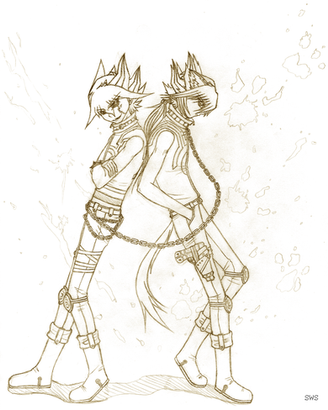 The dark lineart looks cool and I like that it has both Ryou and Yami no Bakura in it. o-o