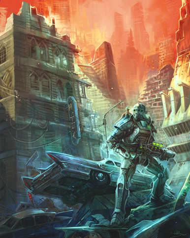 Well, I really like the colors, but I just can't overlook the fact that you messed a bit the perspective, for example in the Highwayman or the minigun. Keep that in mind when doing your next works.