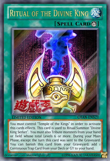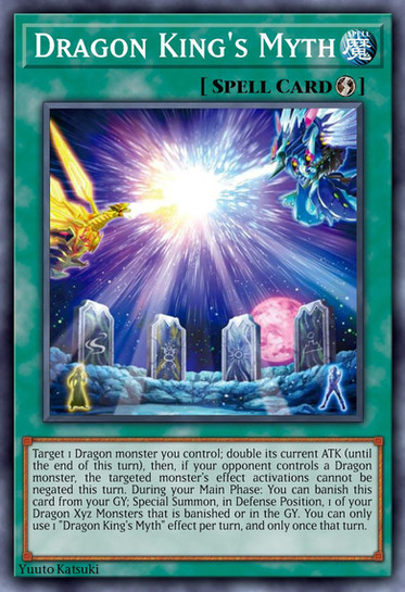 Lore : You can choose any Ritual Spell Card, this card's name become that Ritual Spell card's name. This card can only be used to Ritual Summon any Dragon Ritual Monster from your hand or GY. You must also Tribute 1 lv 7 or higher Dragon monster and other Effect monsters from your hand or field whose total Levels equal the Level of the Dragon Ritual Monster you Ritual Summon. While this card is in your GY : Ritual Monsters your opponent control cannot attack or activate effect. During either player's turn, if a Dragon monster you control would be destroyed by battle or card effect : You can Special Summon 1 Dragon monster from your Extra Deck or GY instead and if you do, shuffle this card into your Main Deck.