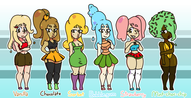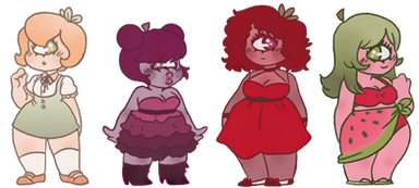 The various designs I did.2 is a rework of the Strawberry Lemonade adopt I did on AskMae!