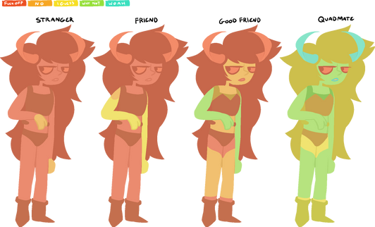 Generally the same as the red areas, but can be in a more friendly way without a huge bond needed or a directly sexual implication related to it.