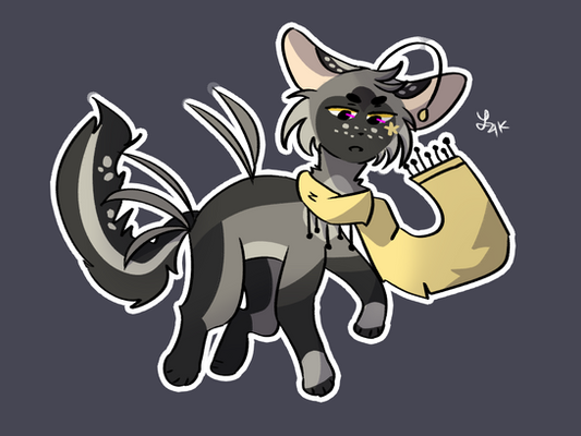 Dealing with burnout rn from artfight but I drew V as a cat! (Fun fact, her yellow armband is actually a yellow scrunchie)!! Character is Serial Designation V (or V) from Glitch Production's animated Youtube series; Murder Drones. I just turned V into a cat xD.
