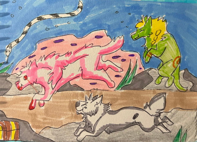 I'm super annoyed as I managed to spill water on the part above Harley and I rubbed it, not thinking and its kinda smudged and paper is coming off. I tried to fix it so ehh1/3 AOA's for TheOddChild07 and SnowCrossFox
