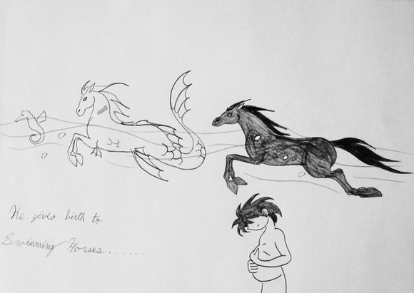 I was asked to bring some pictures to a xmas-bazaar and in a state of sleep deprivation and immense pain I found myself saying yes. Something happened inside my head and these found their way onto the paper and I'm still making more.Ink pen, Watercolour and Wine.