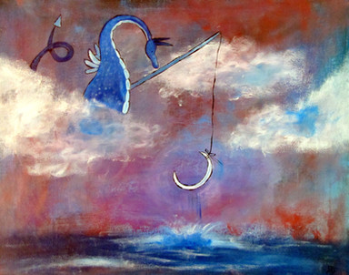 Take a look at the moon on that, it's the Best moon I've ever painted!Acrylic paint on a thick cardboard strip from inside a roll of fabric that I've reinforced with duct tape.