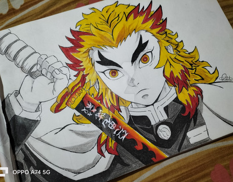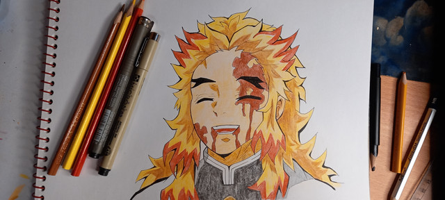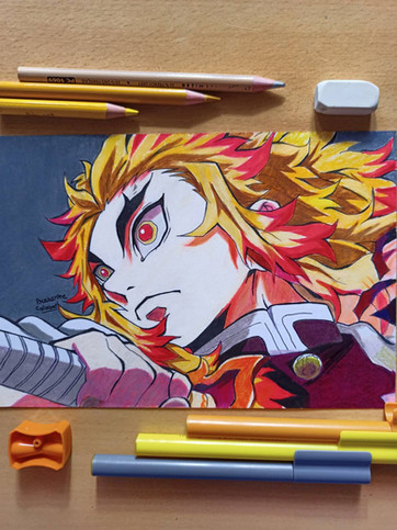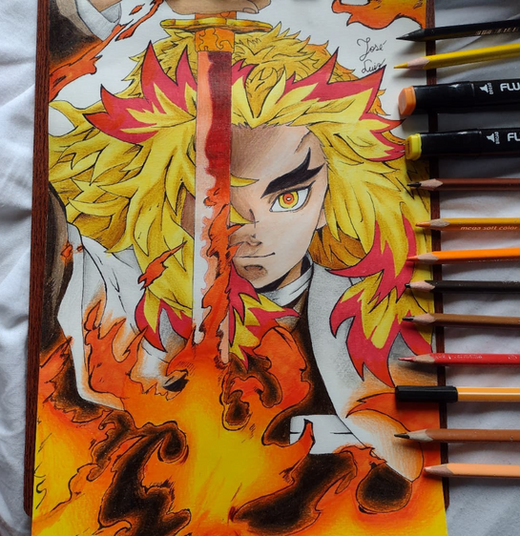 My fanart drawing is flaming hot like the summer weather in California.Here's my fanart drawing of Kyojuro Rengoku from Demon Slayer anime. Can't wait for the movie to come out and the new season.