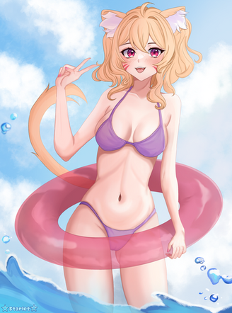 #anime #envtuber #animalears #animegirl #bathingsuit #blondehair #blush #choker #csp #cute #digitalart #drawing #fanart #foxgirl #illustration #kon #lighting #neko #pigtails #sketch #uniform #kemonomimi #schoolswimsuit #animaltail #clipstudiopaint #art #twitchcreative #kemonojihen #vtuber #phvtuber
