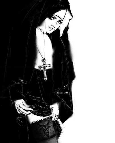 En cuanto al dibujo, pues simplemente lo dibujo y ya está,voy sacando poses y las que me sugieren mas erotismo las trabajo más hasta dibujar la monja y los detalles que considere adecuados.